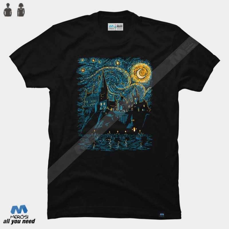 تیشرت Starry school Hogwarts Harry Potter طرحی از مدرسه هاگوارتز در هری پاتر ، از جنس 100 درصد نخ پنبه با چاپ دیجیتال مستقیم.